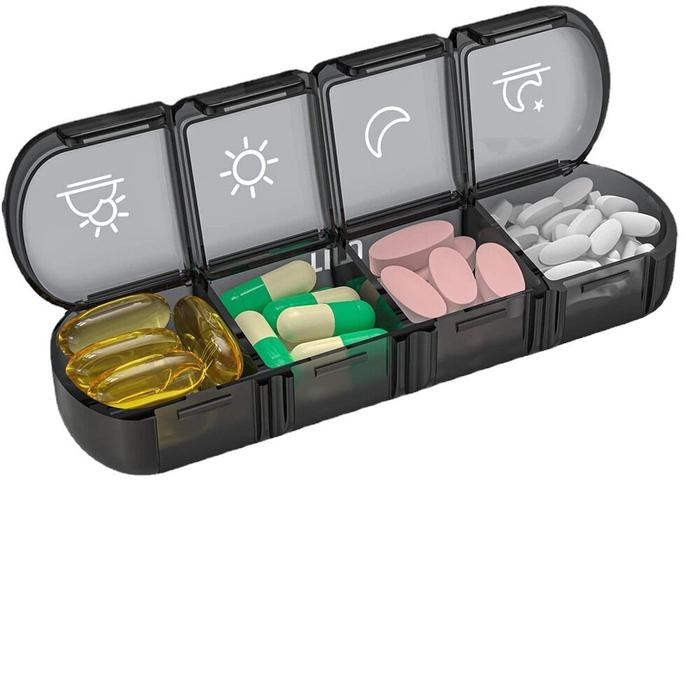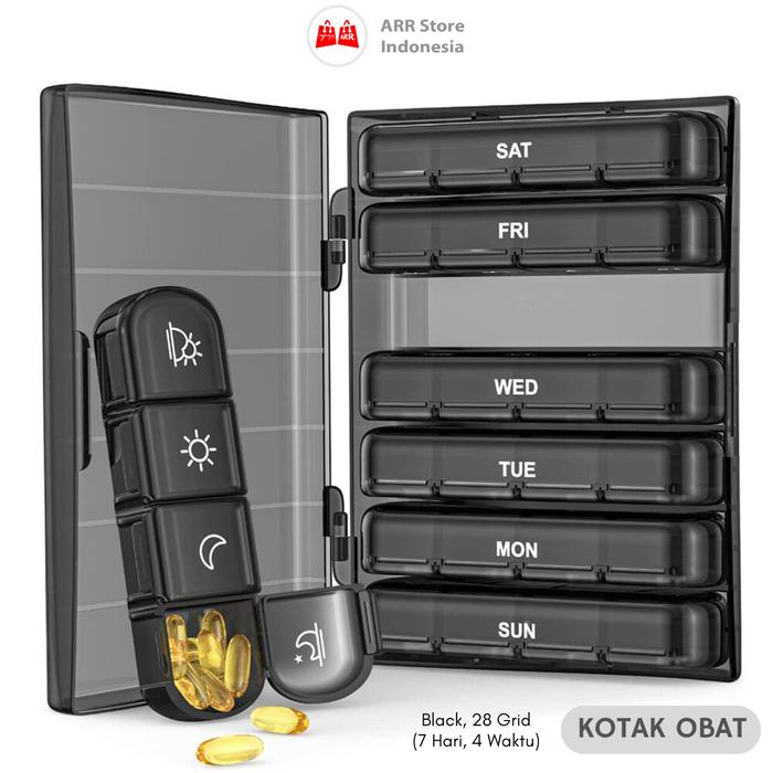 PROMO 8.8 KOTAK OBAT 7 HARI 4 WAKTU WARNA HITAM MEDICINE TRAVEL BOX PILL TABLET BOX TEMPAT OBAT HARIAN PAGI SIANG MALAM 7 HARI