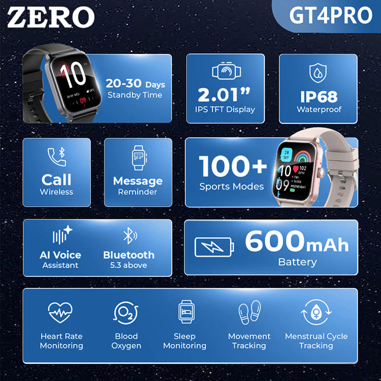 Zero Gt4 Pro Smartwatch 2.01 Inch Hd Amoled Full Display Gts Ultra Bluetooth Phone Call Jantung Oksigen Darah Tahan Air