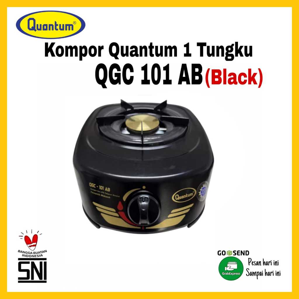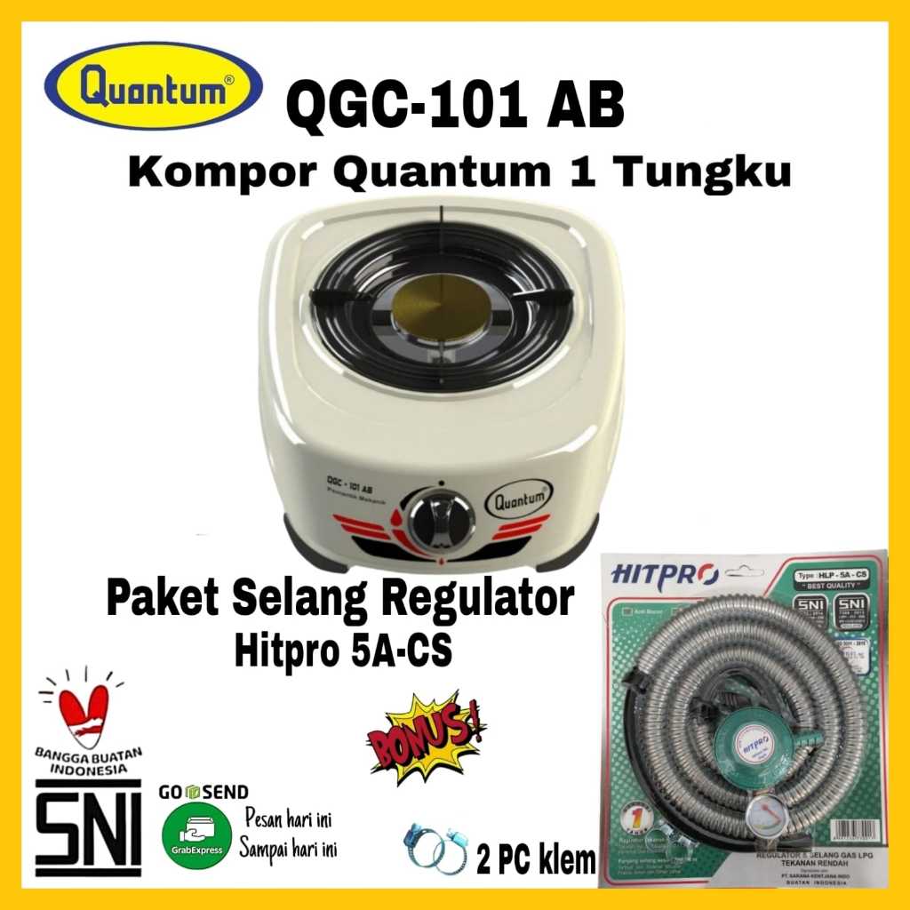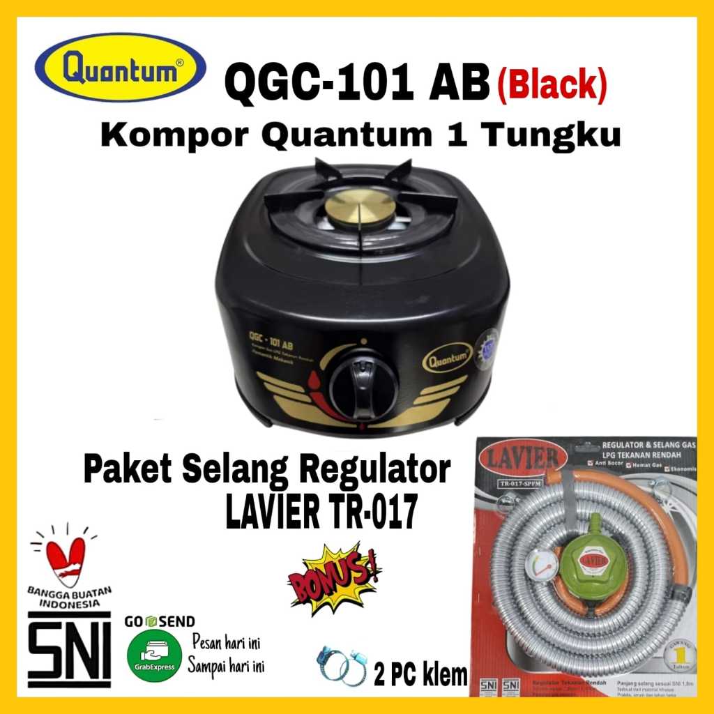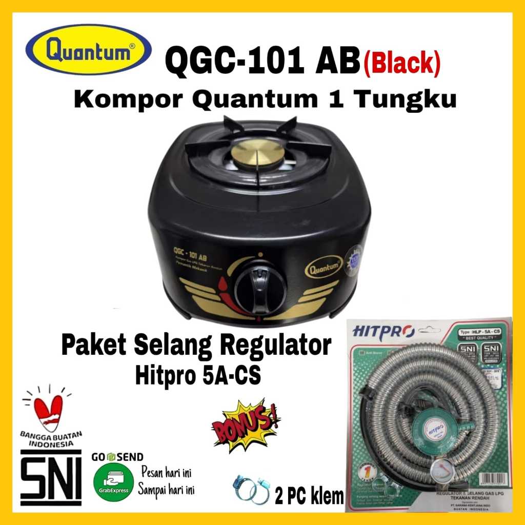 Paket Kompor QUANTUM 1Tungku QGC 101-AB/ QGC 101-AB PUTIH / QGC 101-AB HITAM Bonus Selang Regulator Quantum HITPRO 5E-CS