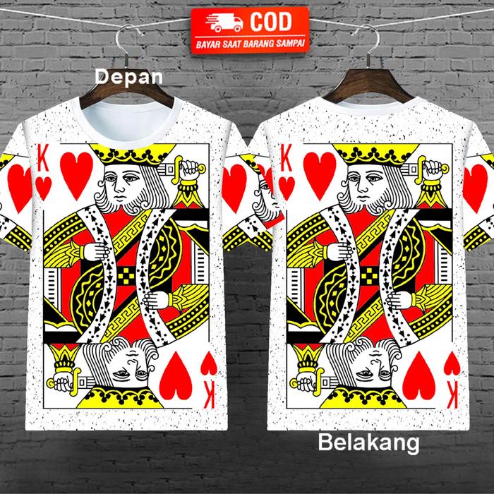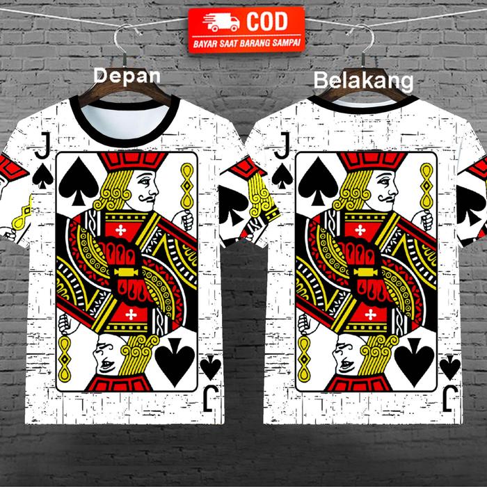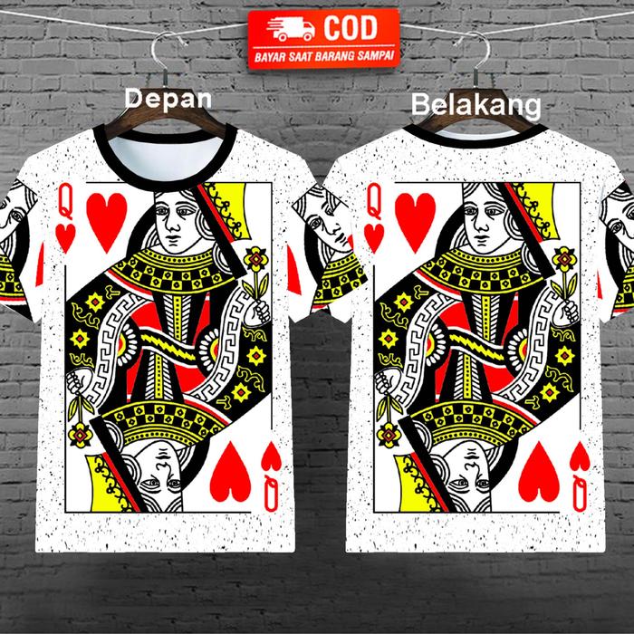 Kaos Distro Cowok Motif Kartu King Queen Depan Belakang Katun baju distro 0KQRC