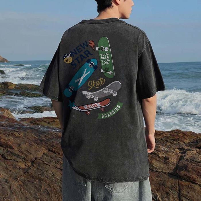 Kaos Pria T-shirt Baju Kaos Oversize | Skateboard Motif | Vintage Longgar Kaos Washed Pria Baju Distro Oblong Pria