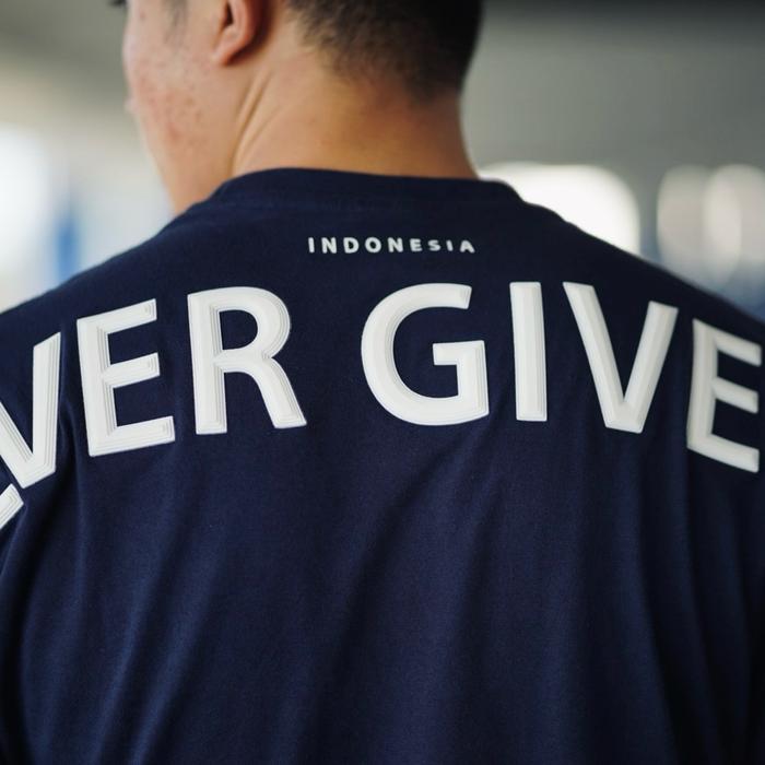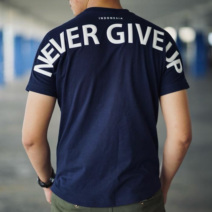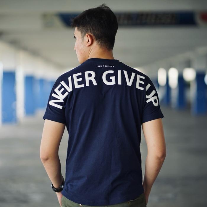 BOZRVK TSHIRT KAOS NEVER GIVE UP BIRU Print 3D Piramid Terbaru Sablon Tebal Hitam Dewasa Baju Pria Distro Nyaman NGUN