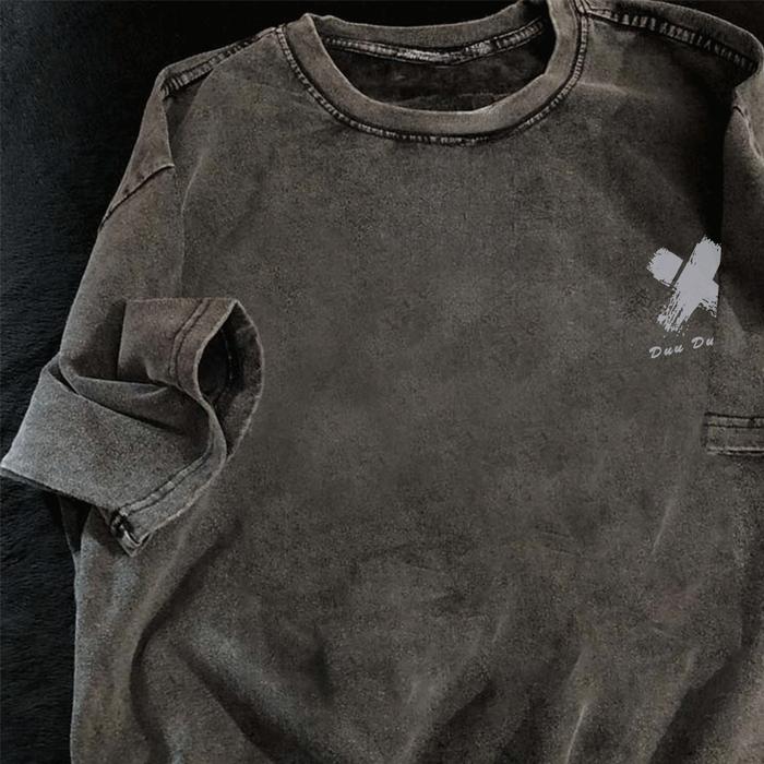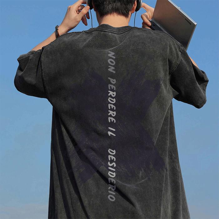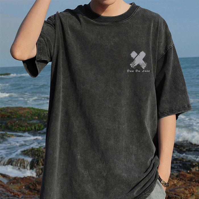 Kaos Pria T-shirt Kaos Oversize | Sablon “X” | Vintage Longgar Kaos Washed Pria Baju Distro Oblong Pria PO0632X