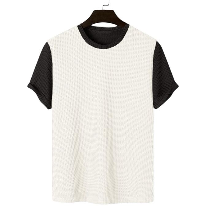 Kaos waffle polos kombinasi 2warna lengan pendek baju pria premium bahan lembut Oblong Distro Dewasa Casual Santai Keren