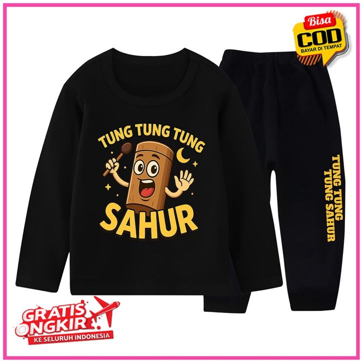 Tung Tung Tung Sahur PIyama Baju Setelan Anak Laki Laki Lengan Panjang Celana Panjang 3Tahun 10Tahun