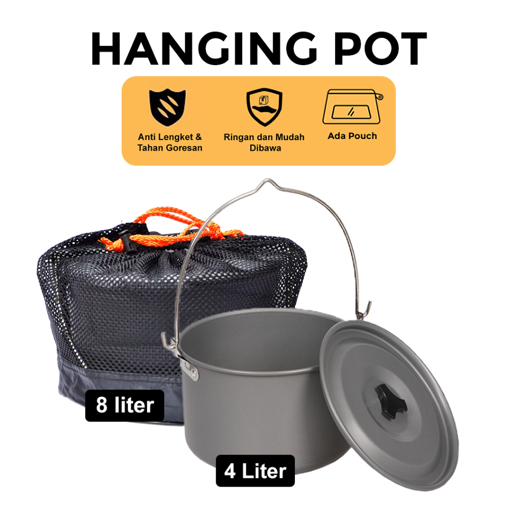 Hanging Pot Camping/ Alat Masak Panci Gantung 4L + ada Tas