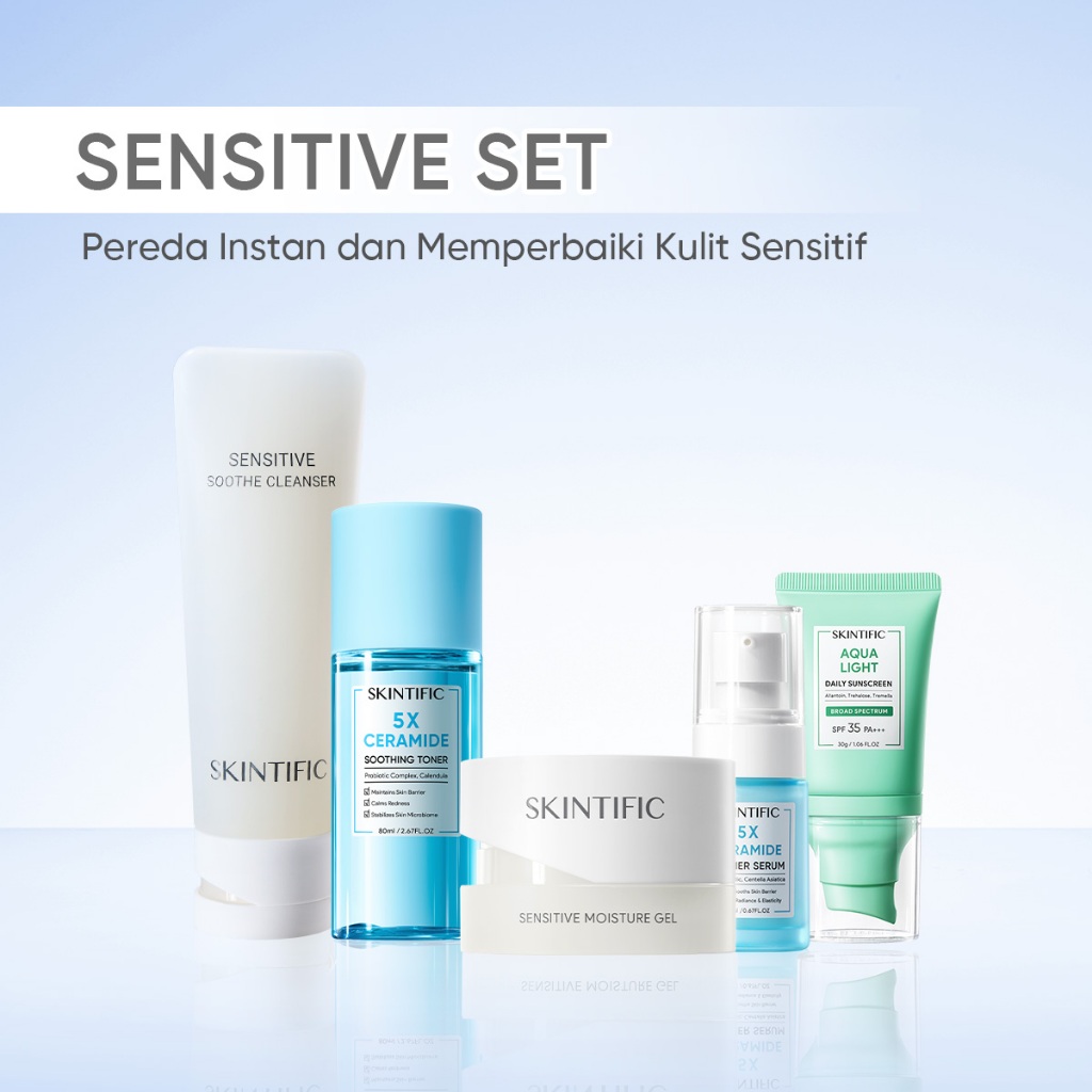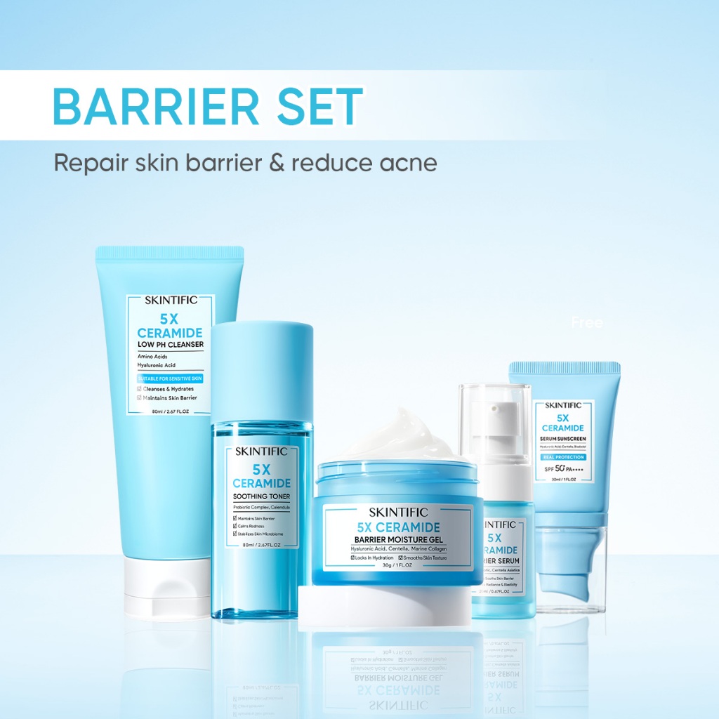 [5PCS] SKINTIFIC- Full Series Skincare Set | 5X ceramide Serum Moisturizer Gel Toner Sunscreen Cleanser Mousse Facial Wa