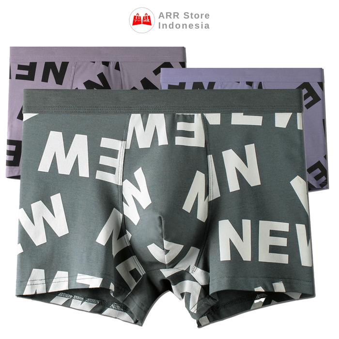 PROMO 8.8 CELANA DALAM BOXER PRIA CELANA DALAM KATUN PREMIUM MOTIF GRAY GREEN KHAKI GRAY L