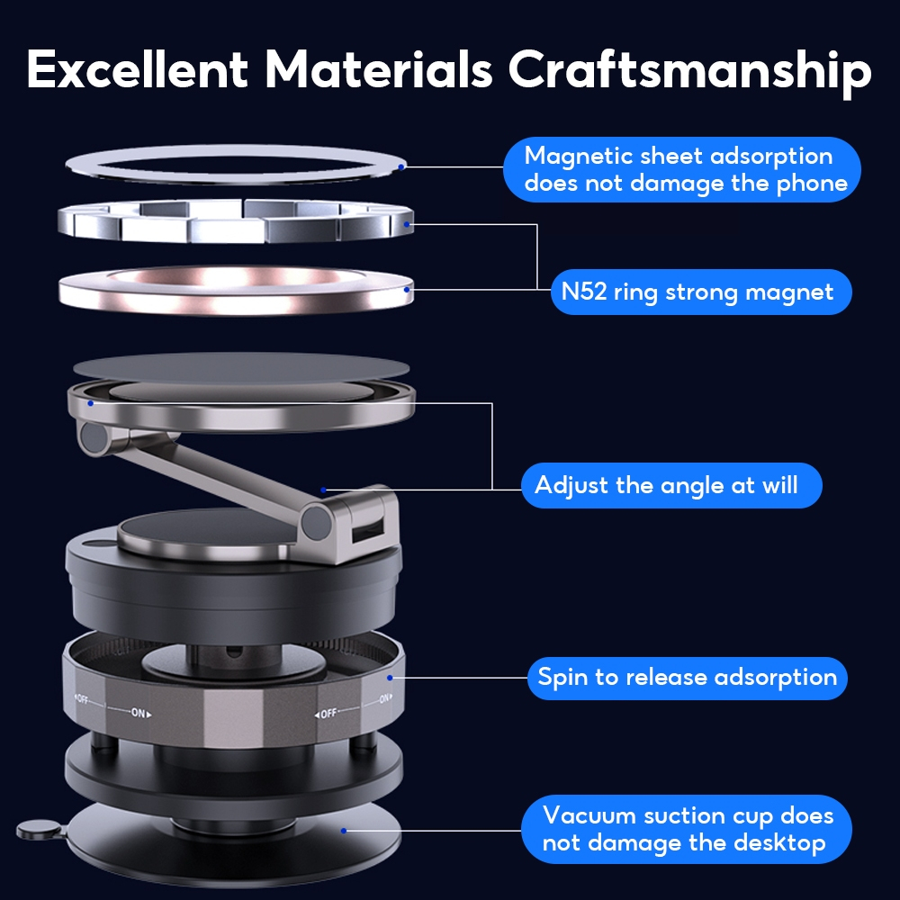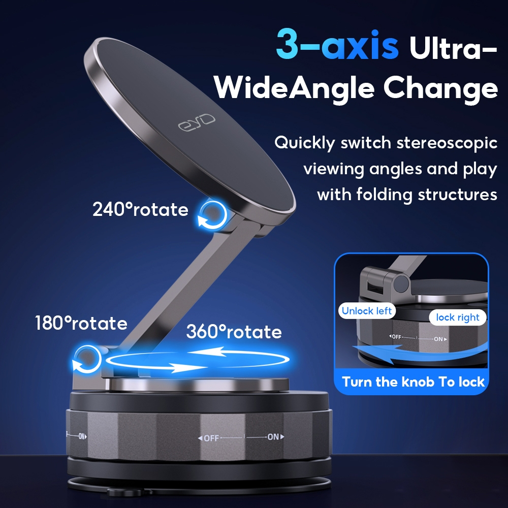 EYD VP05 Magnetic Phone Holder 360° Rotation Adjustable, Universal Car Mount & Desktop Stand, Vacuum Suction