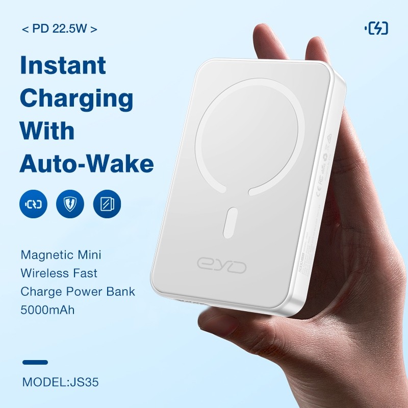 EYD JS35 5000mAh Magsafe Wireless Powerbank Magnetic PD 22.5W Fast Charging Power Bank Original LED Power Display