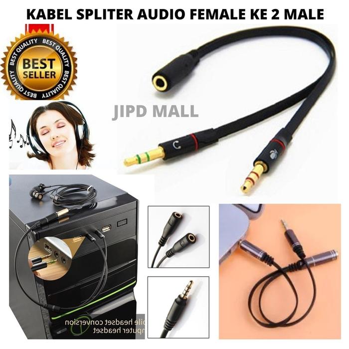 PROMO TERBATAS KABEL SPLITER AUDIO JACK 35MM FEMALE KE 2 MALE HIFI MIC EARPHONE 1111
