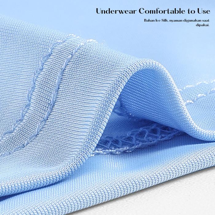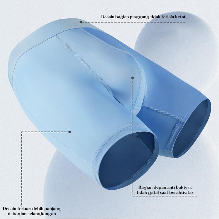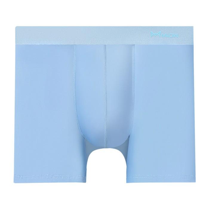 PROMO 8.8 CELANA DALAM BOXER PRIA MIIOW ICE SILK SOLID COLOUR MODEL PANJANG SEAMLESS COWOK BIRU MUDA L