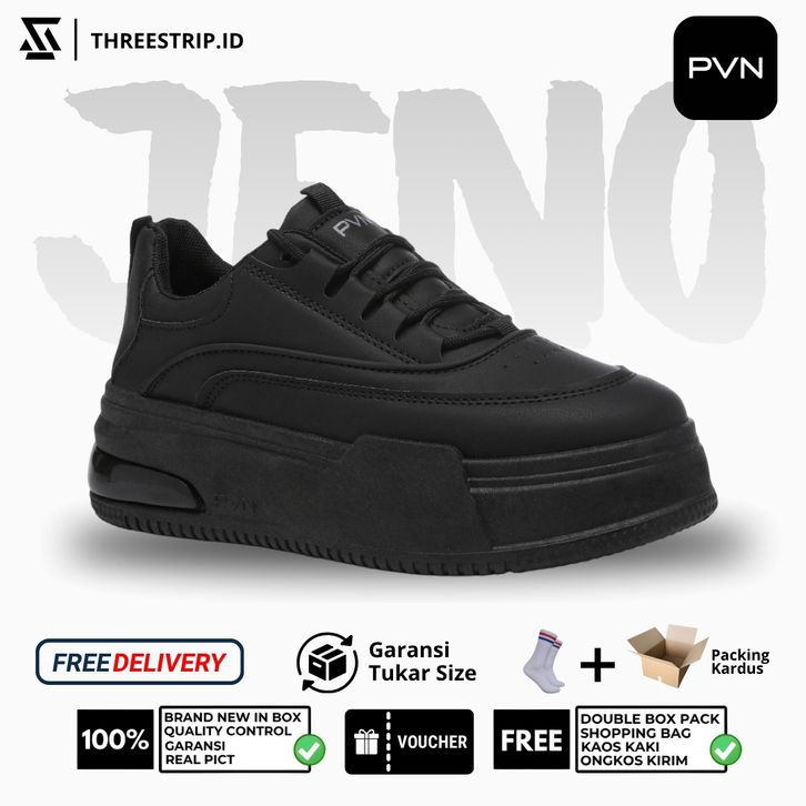 SEPATU SEKOLAH WANITA HITAM PVN JENO SNEAKERS KOREA CASUAL SPORT RINGAN & STYLISH