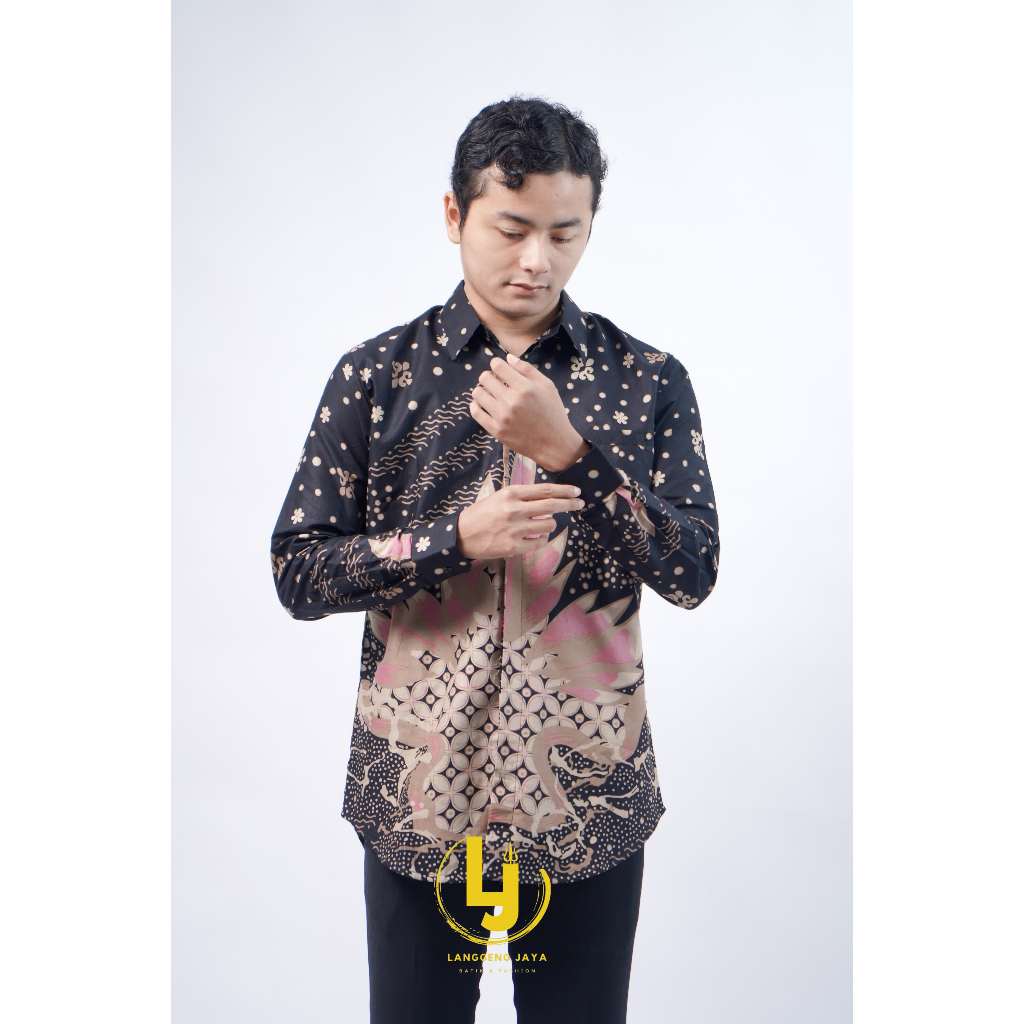 Kemeja Pria Lengan Panjang Kemeja Batik Lapis Furing Motif Godong Kawung