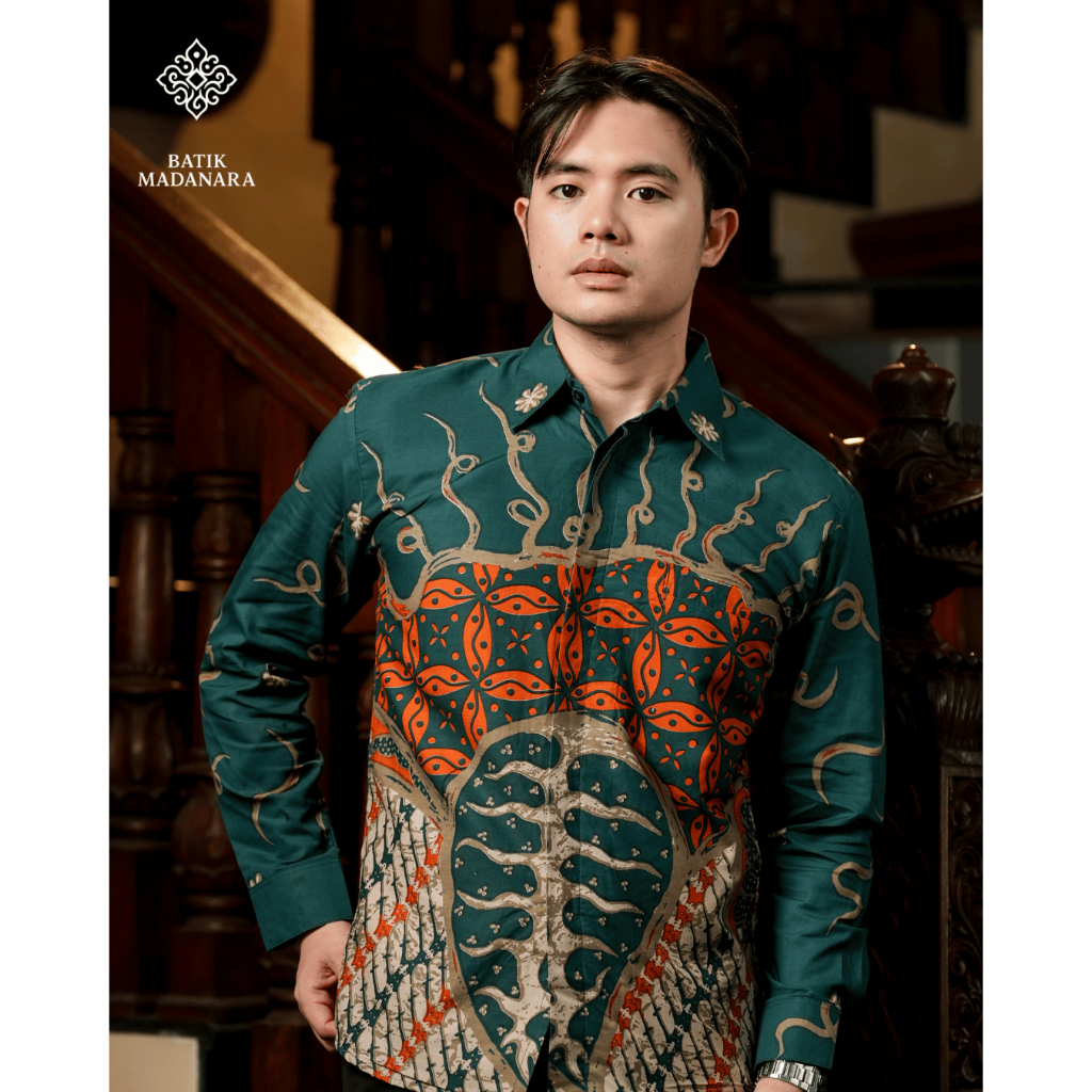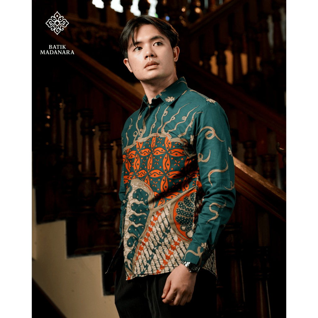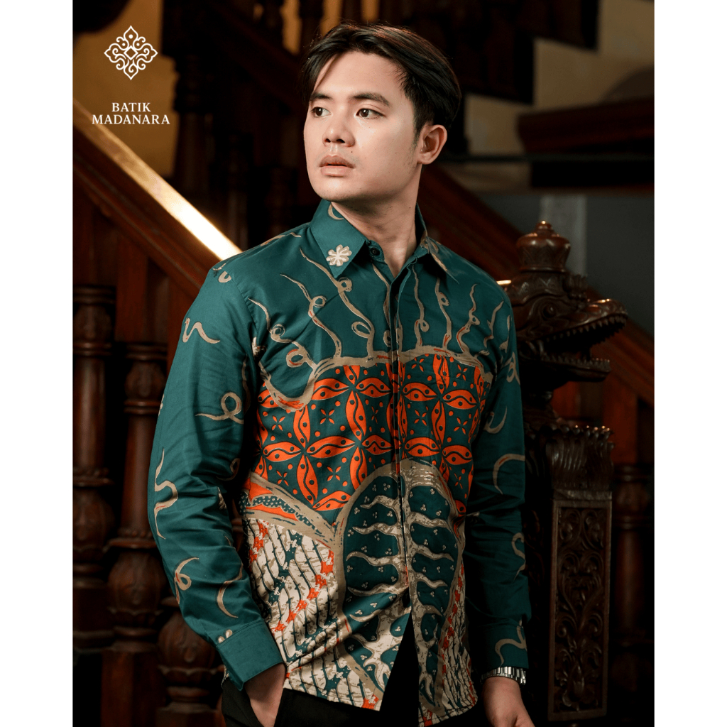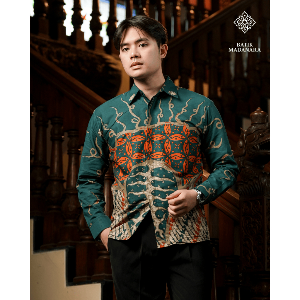 Batik Madanara Motif Kawung Kencana - Kemeja Batik Pria Slimfit Premium Lapis Furing Lengan Panjang Bahan Cotton
