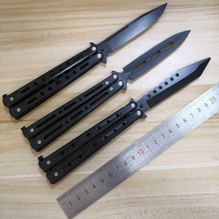 PROMO TERBATAS LEFAVOR BALISONG TRAINING KNIFE TITANIUM A3 112 HITAM POLOS