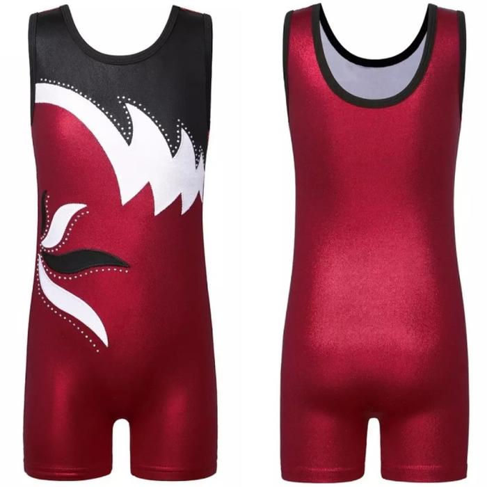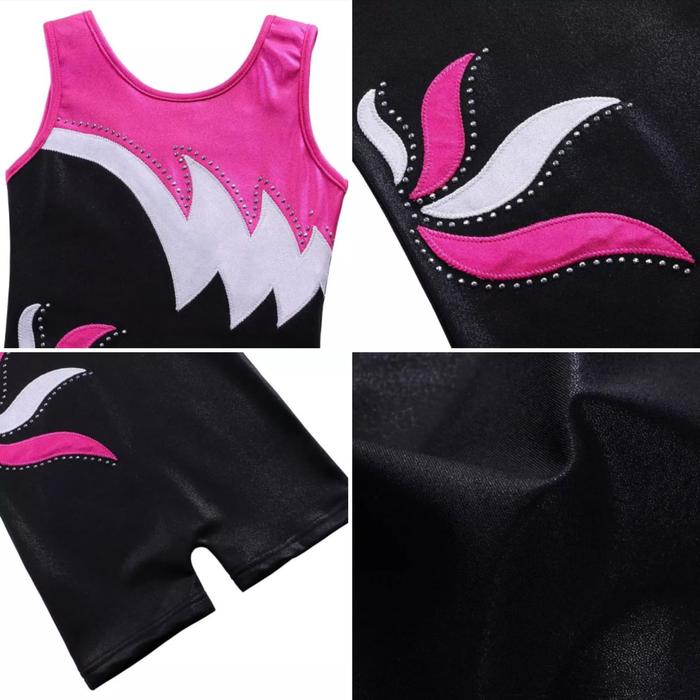 PROMO TERBATAS BAJU SENAM GYMNASTIC RHYTHMIC LEOTARD TANK JUMPSUIT ANAK FLOWER LIGHT REDBLACKWHITE SIZE 100