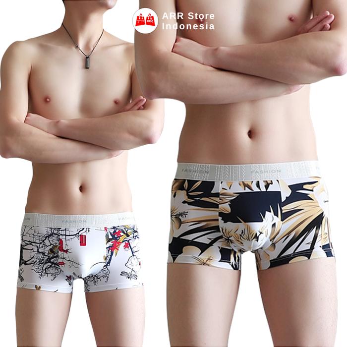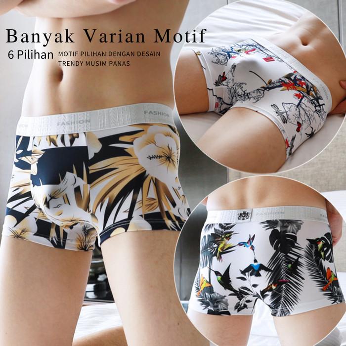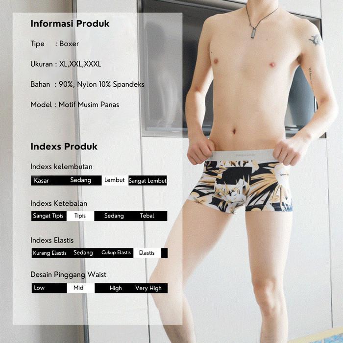 PROMO 8.8 BOXER PRIA CELANA DALAM ICE SILK UNDERWEAR BOXER PRIA MOTIF IMPORT LEAF YELLOW XXL
