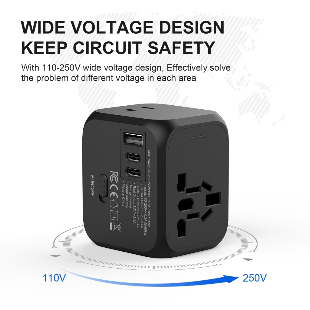 EYD SN31 All-in-one Worldwide Universal International Travel Adapter Charger Adapter Plug Surge Protector Lock UK China