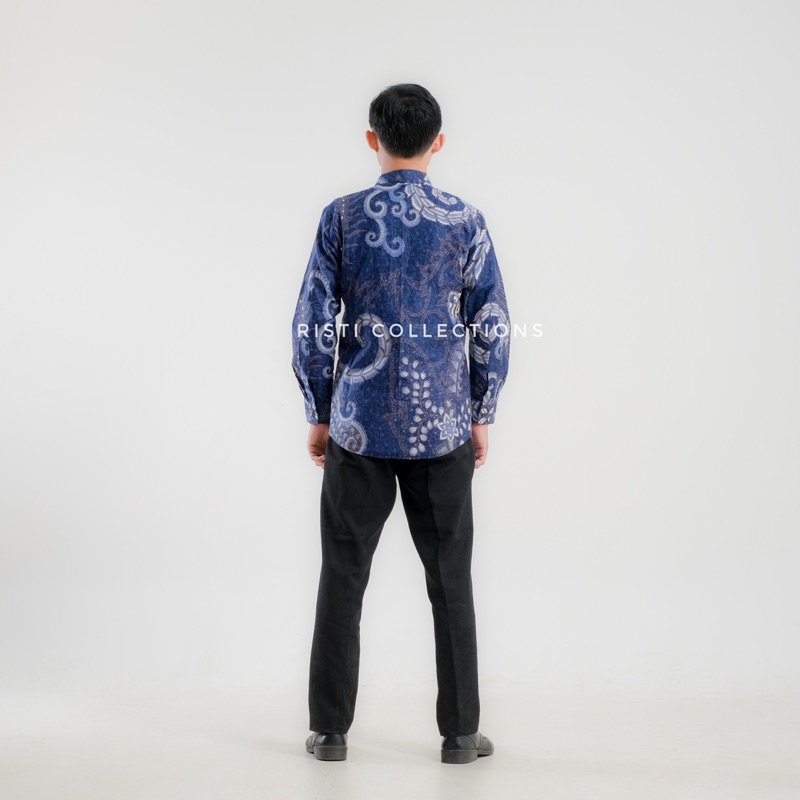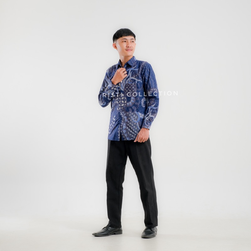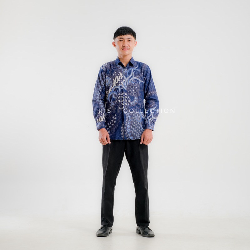 Kemeja Baju Batik Slimfit Lapis Furing Ekslusive Lengan Panjang Akar Kawung Navy