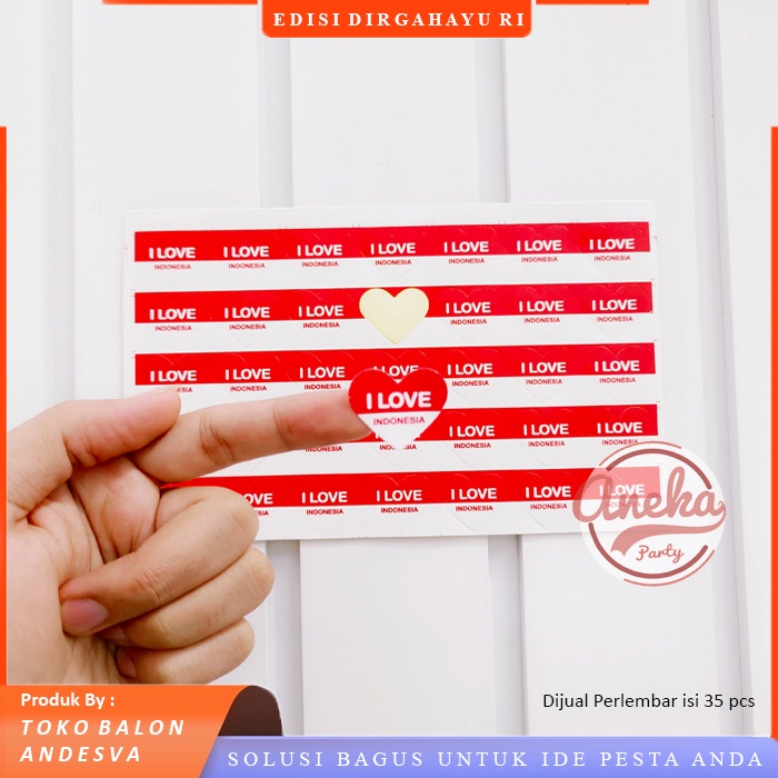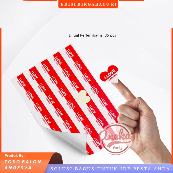 ( isi 35 ) Stiker pipi merah putih bentuk hati / stiker pipi bendera hati i love / stiker indonesia hati
