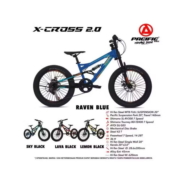 Terbaru Sepeda MTB 20 Pacific X Cross 2.0 Fullsus 7 Speed Shimano Murah banyak bonus Sepeda Gunung Ukuran 20 Pacific