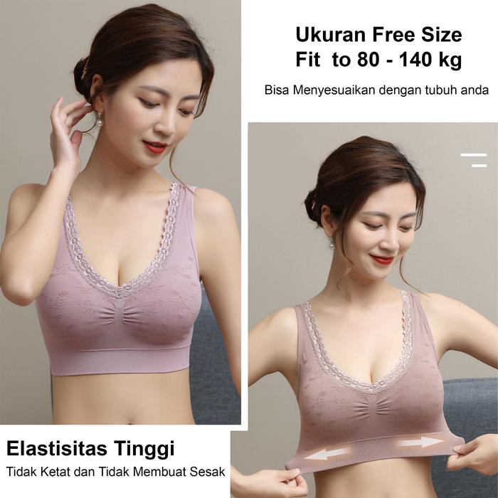 PROMO 8.8 BRA BH WANITA RENDA TANPA KAWAT SUPER SOFT PREMIUM ONE SIZE UNGU