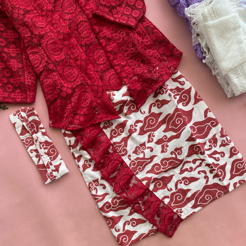 MIGU X BATIK KIDS KEBAYA ANAK NEW BROKAT HIJAB MUSLIM LENGAN PANJANG KEBAYA ANAK JAWA MERAH PUTIH UNGU CREAM
