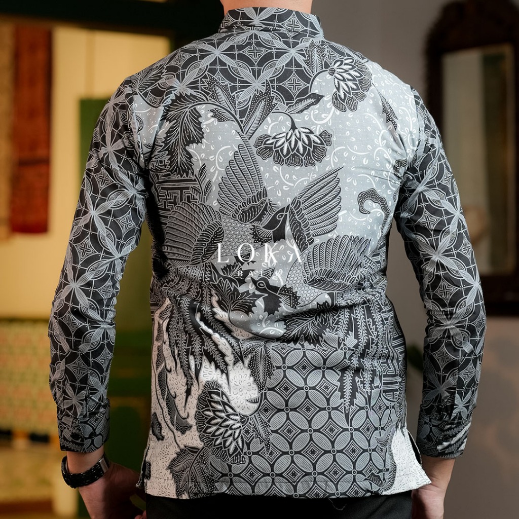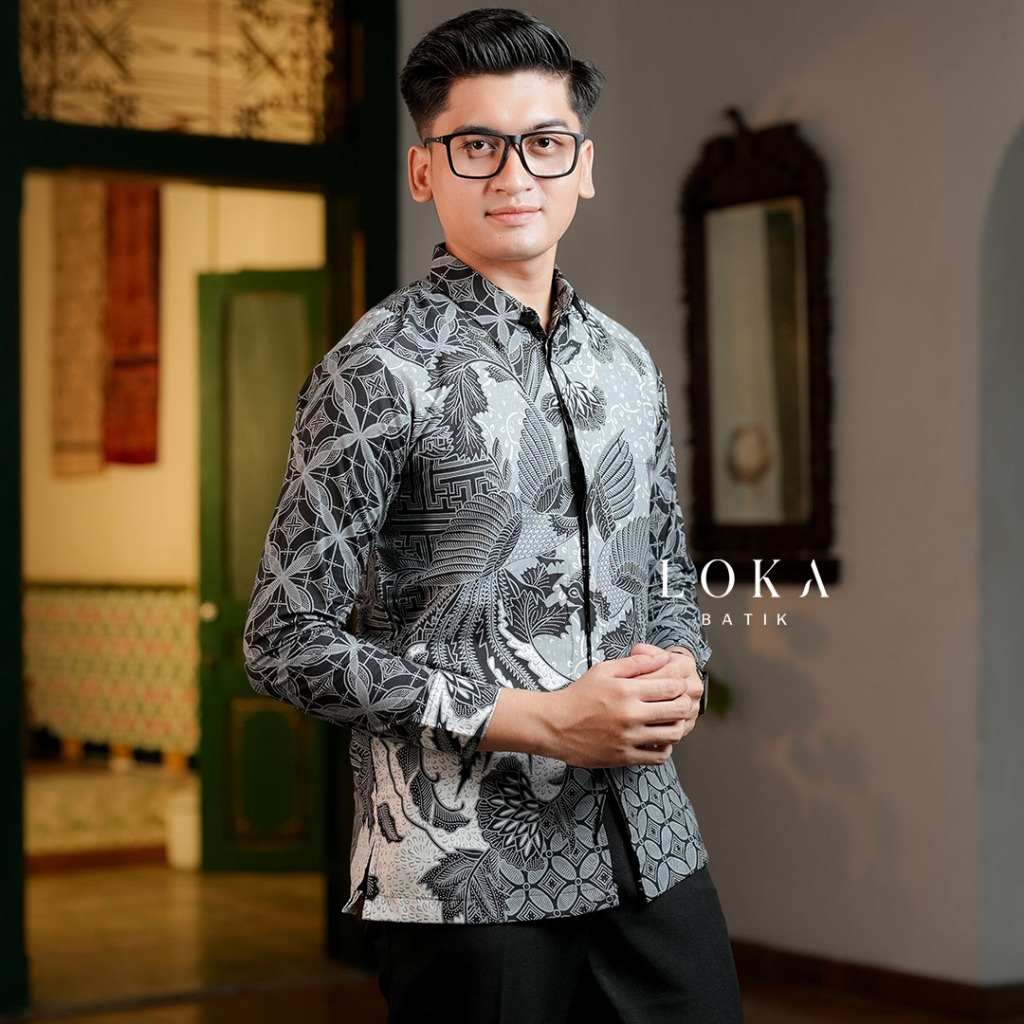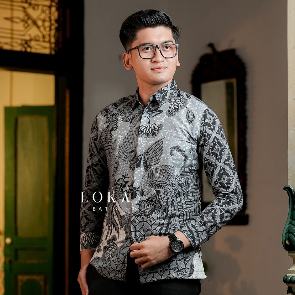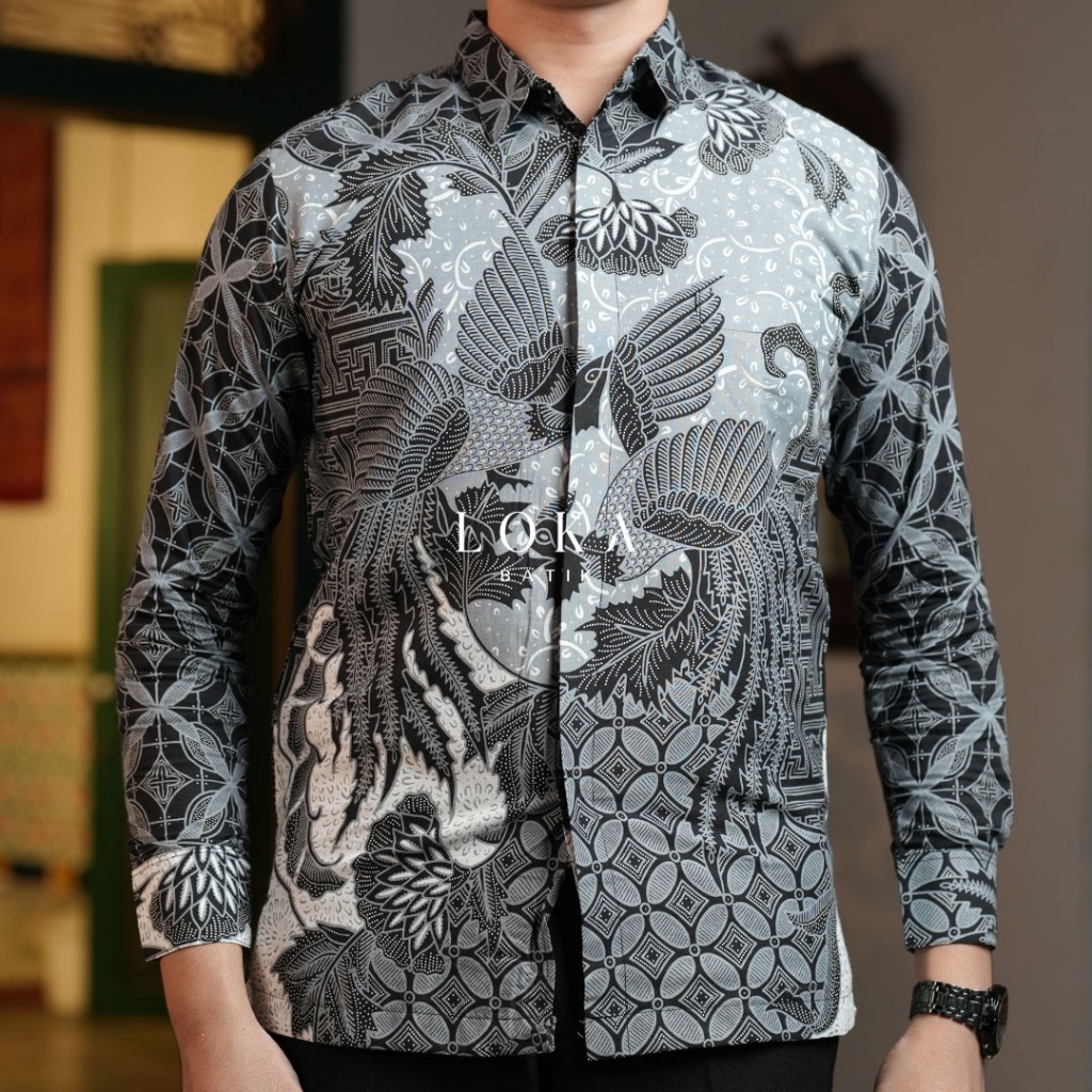Kemeja Batik Loka Motif Peksi Kawung Pria Modern Lengan Panjang Slimfit Full Furing Premium Katun Primisima