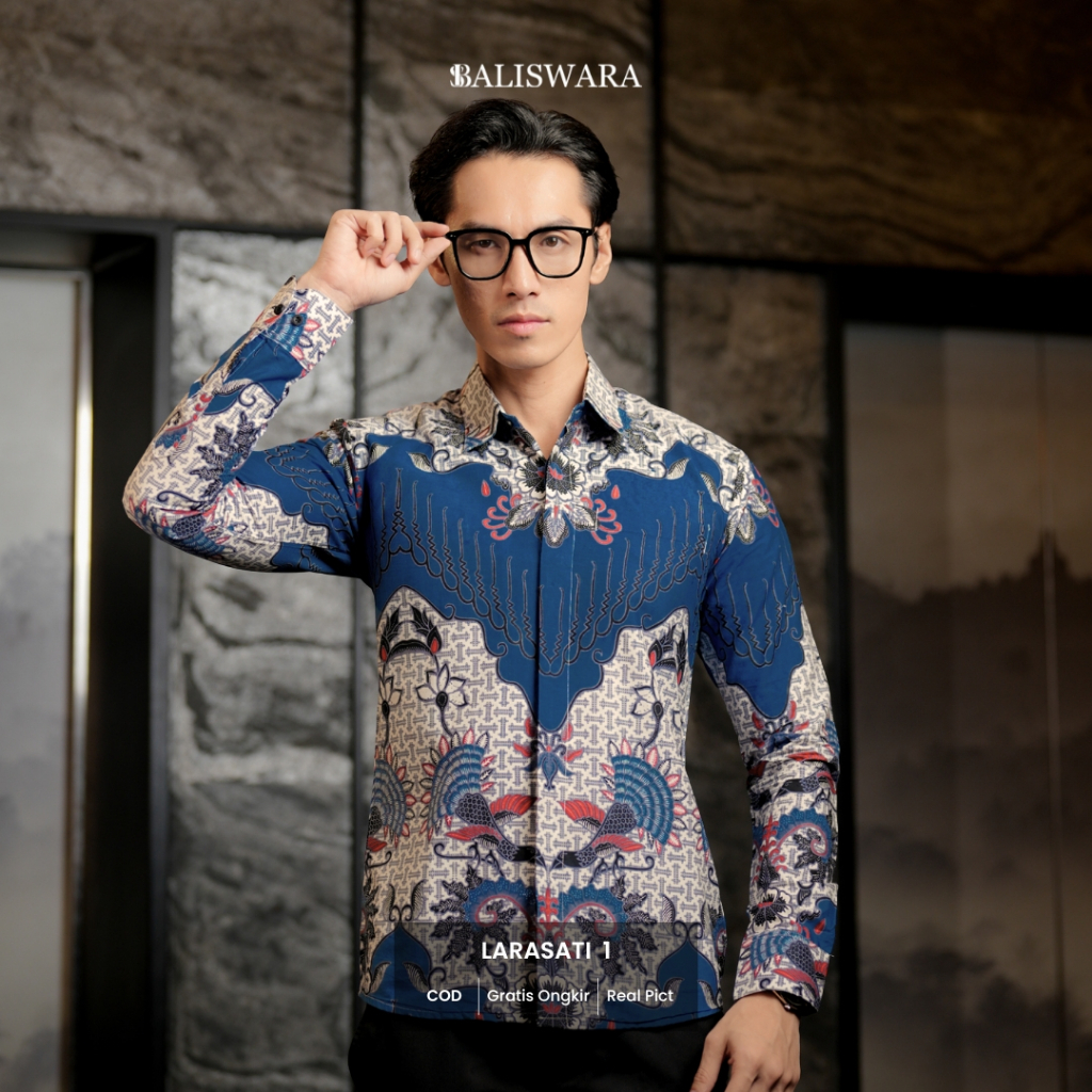 BALISWARA Batik Pria Slimfit Motif LARASATI 1 Kemeja Cowok Laki Full Furing Bahan Premium Lengan Panjang Lengan Pendek