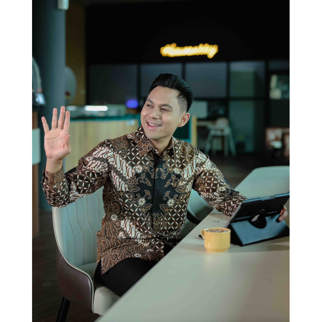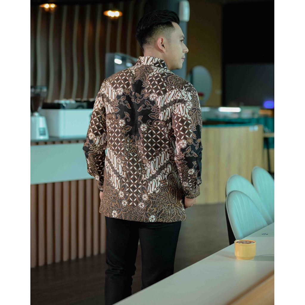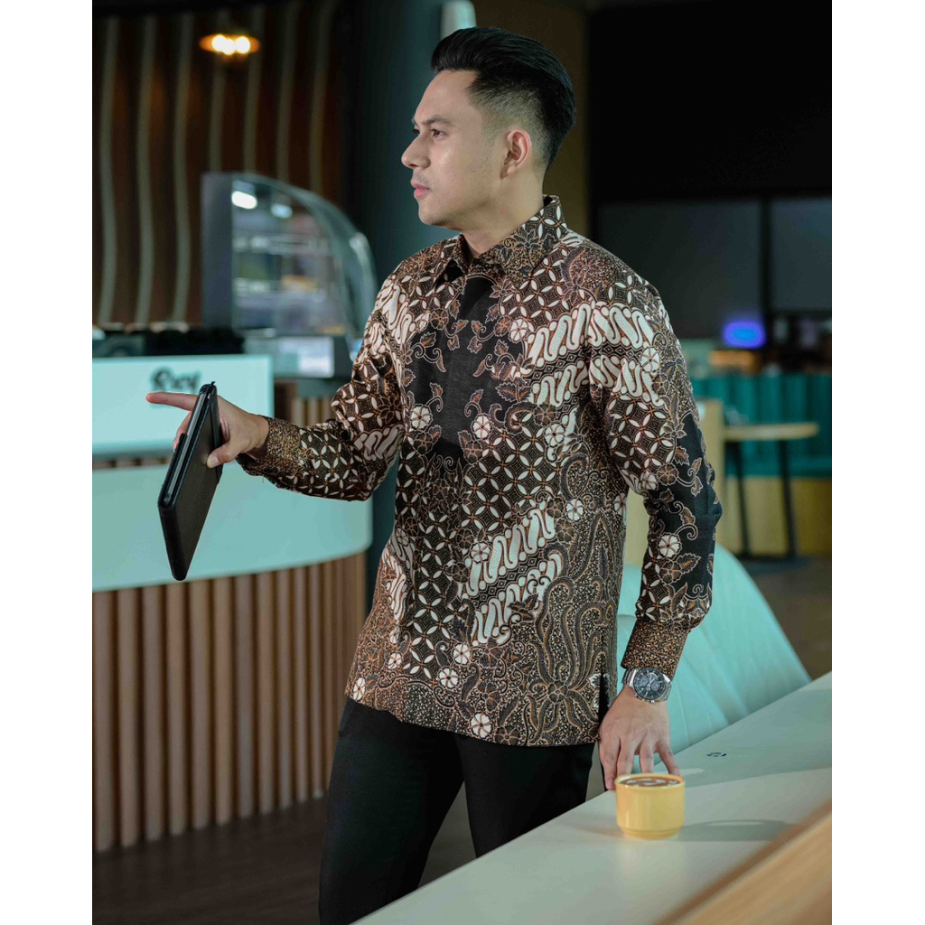 Kemeja batik pria lengan panjang dobi lasem premium kawung brahma sogan