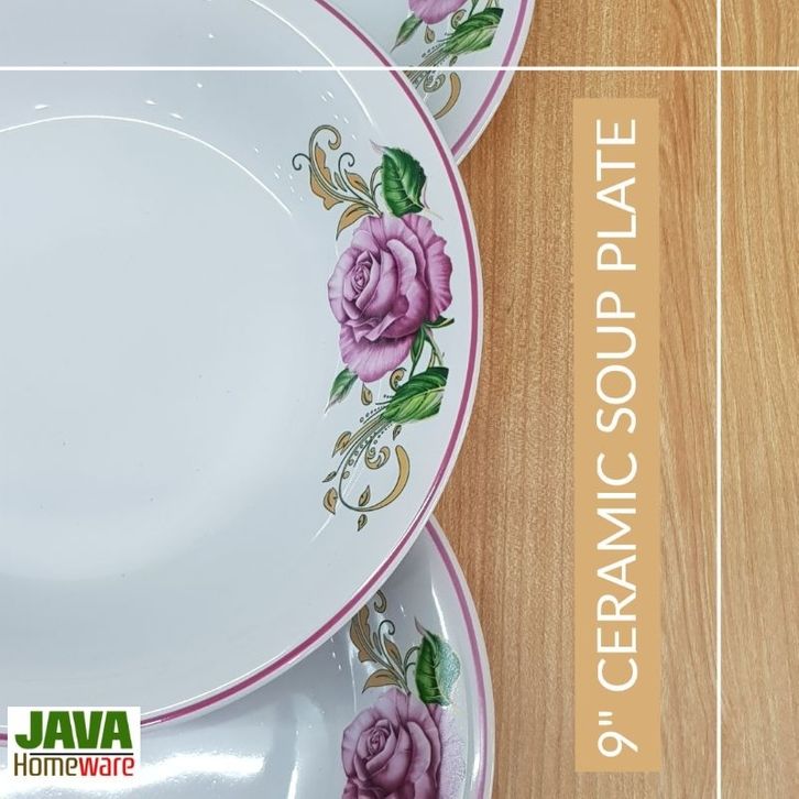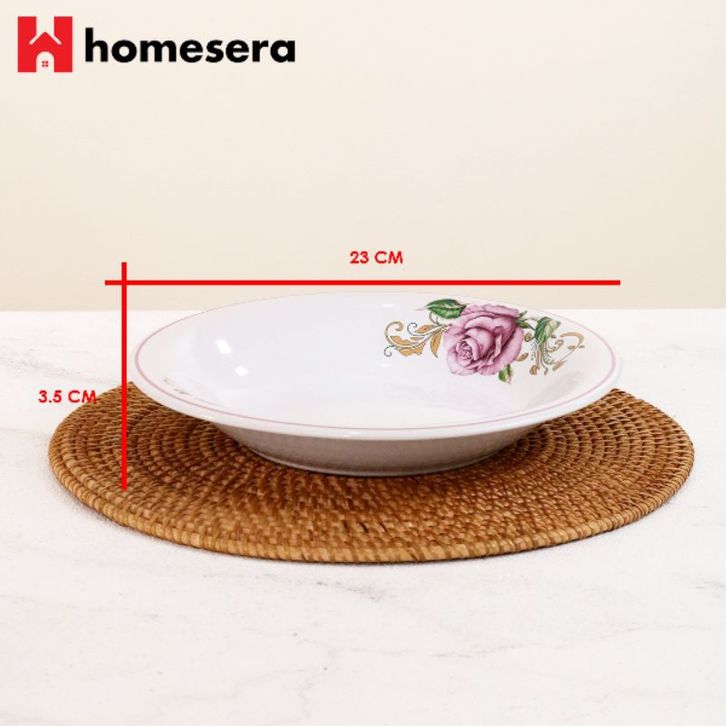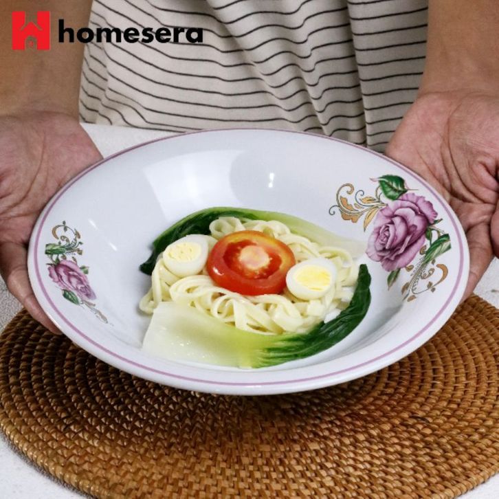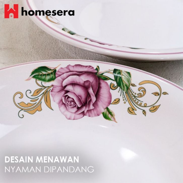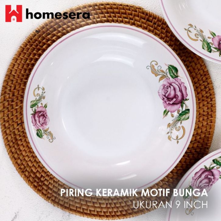 Piring piring PIRING MAKAN KERAMIK BUNGA LIST UNGU DIAMETER 23 CM 6 biji | PIRING MAKAN KERAMIK CEKUNG | PIRING MAKAN K