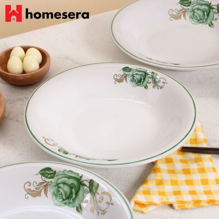 Piring piring PIRING MAKAN KERAMIK BUNGA LIST HIJAU DIAMETER 23 CM 6 biji | PIRING MAKAN KERAMIK CEKUNG | PIRING MAKAN