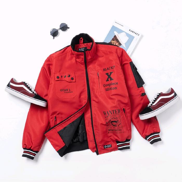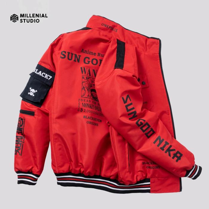 BOMBER JACKET ONE PIECE MERAH SUN GOD NIKA JAKET RACING WATERPROOF ONEPIECE JAKET BIKER PRIA WANITA