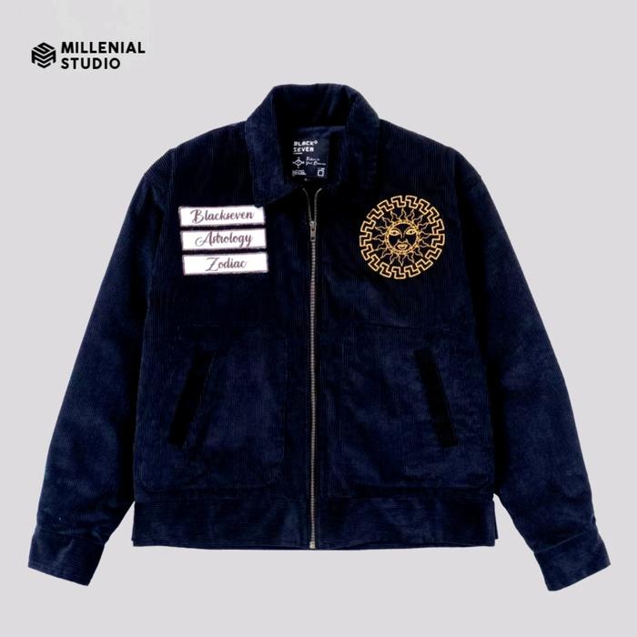 WORK JACKET BOXY ZODIAC NAVY CORDUROY JACKET BORDIR PRIA WANITA ORIGINAL BLACKSEVEN MILLENIAL STUDIO