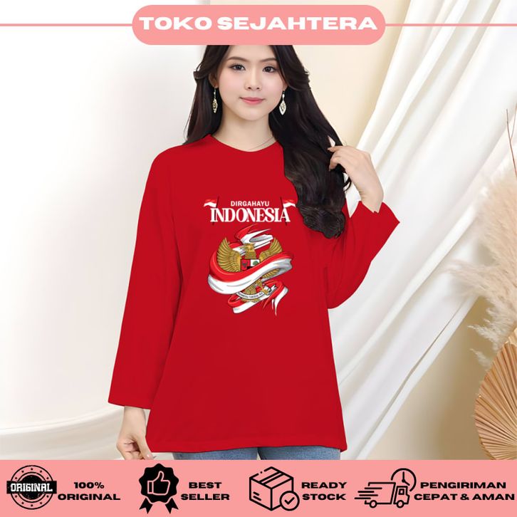 Kaos Oversize Lengan Panjang Dewasa 17 Agustus/Kaos Distro HUT RI Kemerdekaan Indonesia/Kaos Indonesia