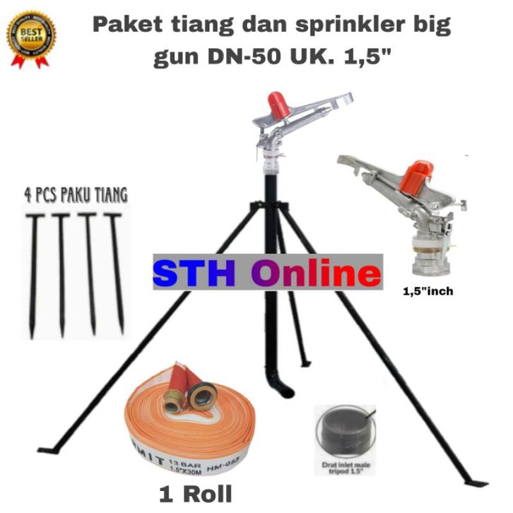 Paket sprinkler dan tiang dan selang DN-50 Radius tembak 30 meter