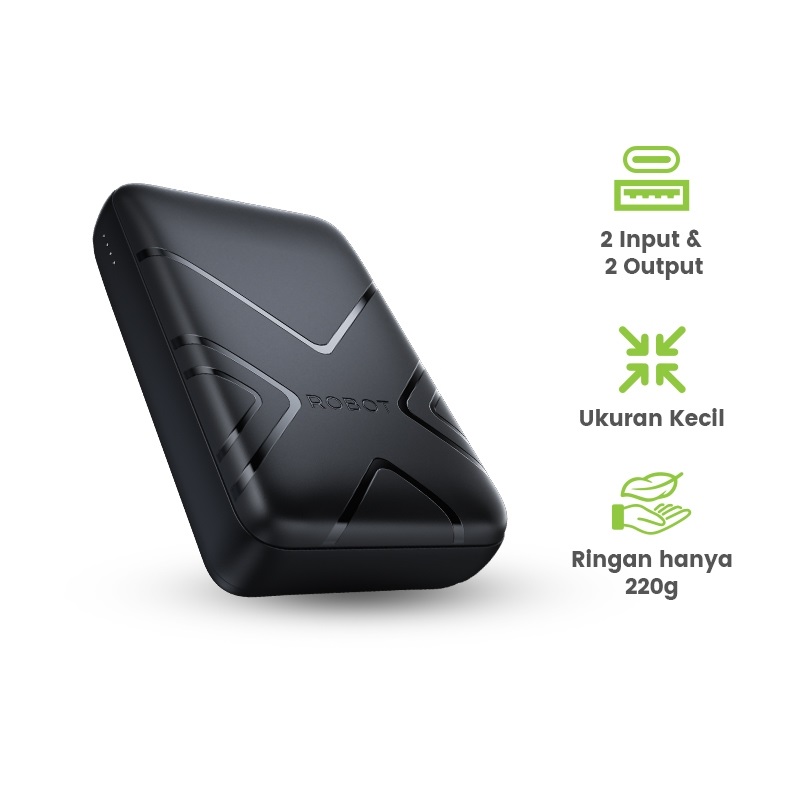 ROBOT Powerbank Mini Fast Charging 10000mAh with Dual Port Type C Micro Power bank RP-105 Original