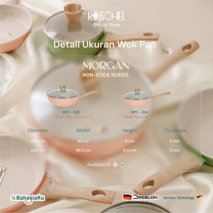 Morgan Non-Stick Wok Pan 24 cm , 28 cm Greblon C2 German Coating Panci Wajan Penggorengan Anti Lengket