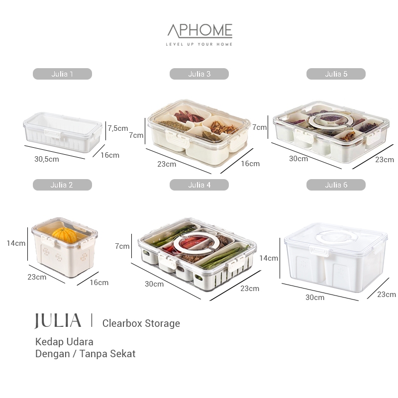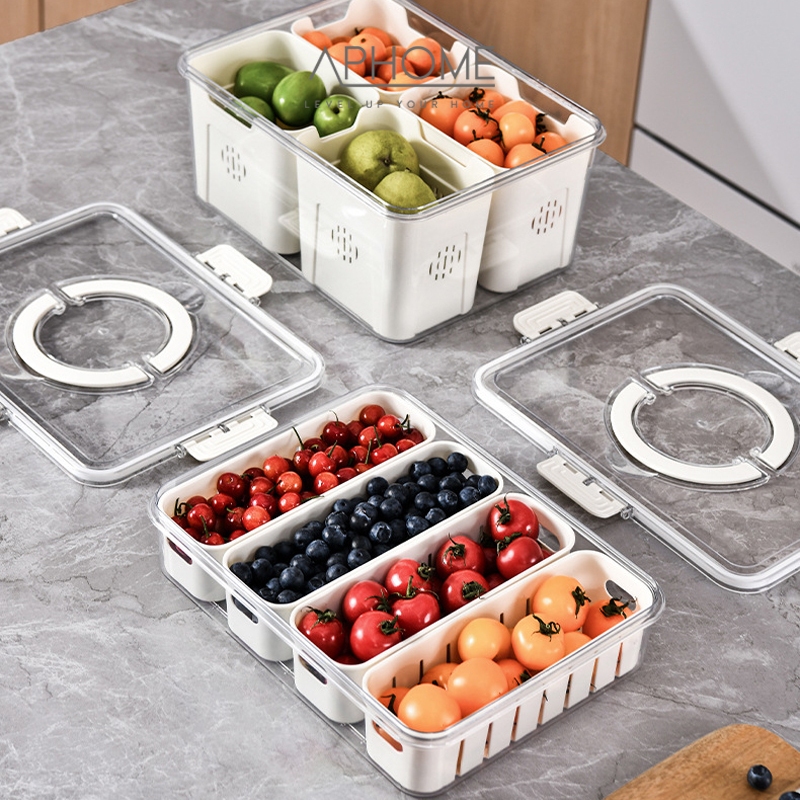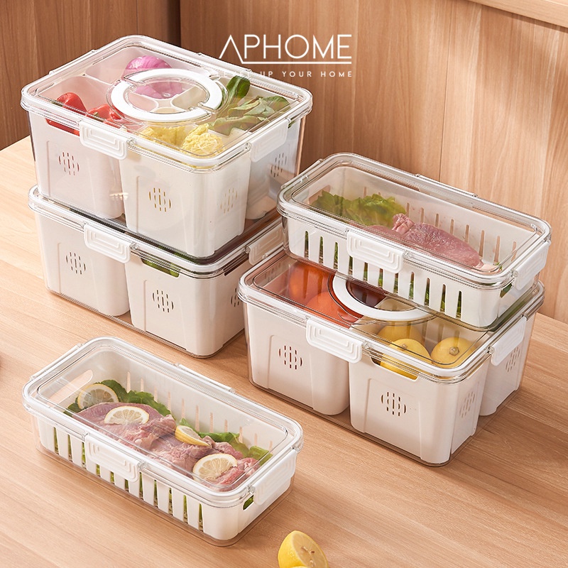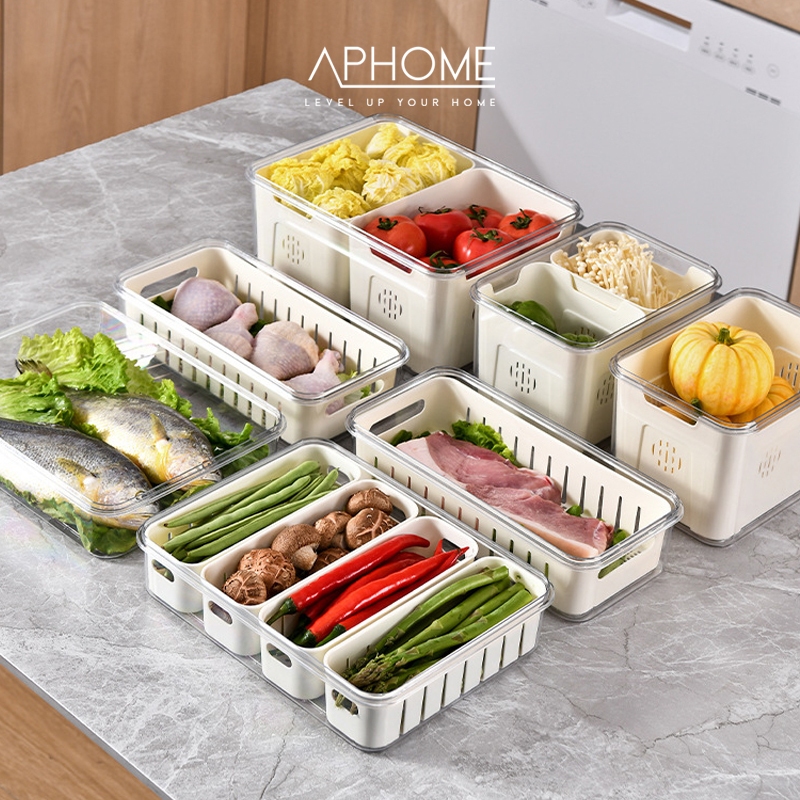 APHOME Kontainer Kulkas Tempat Penyimpanan Makanan Dengan Saringan dan Tutup Transparan JULIA