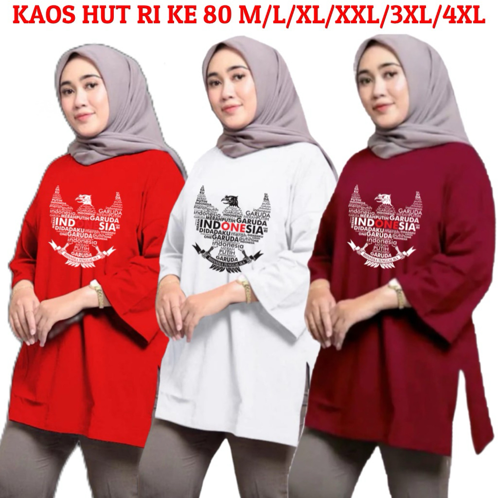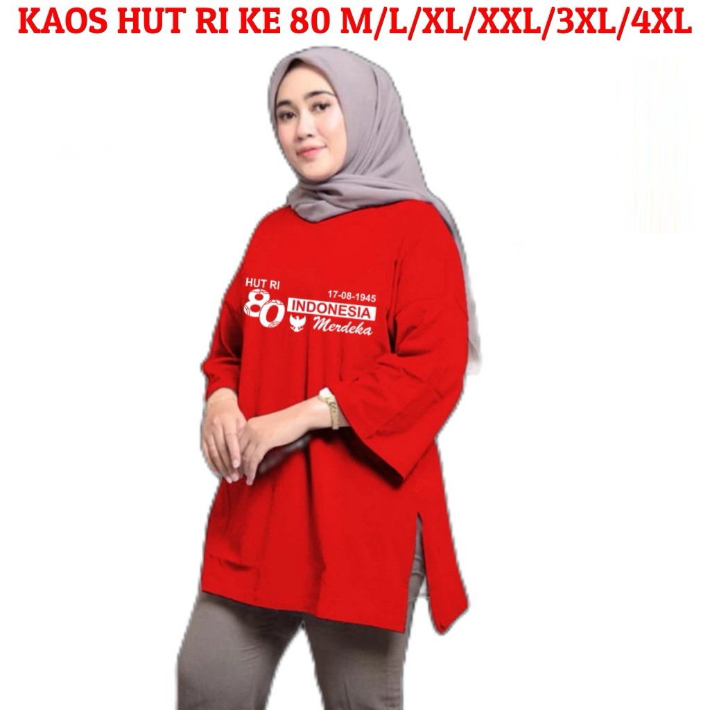 BAJU KAOS KEMERDEKAAN HUT RI KE 80 KAOS OVERSIZE WANITA 17 AGUSTUS ATASAN OLAHRAGA TERLARIS
