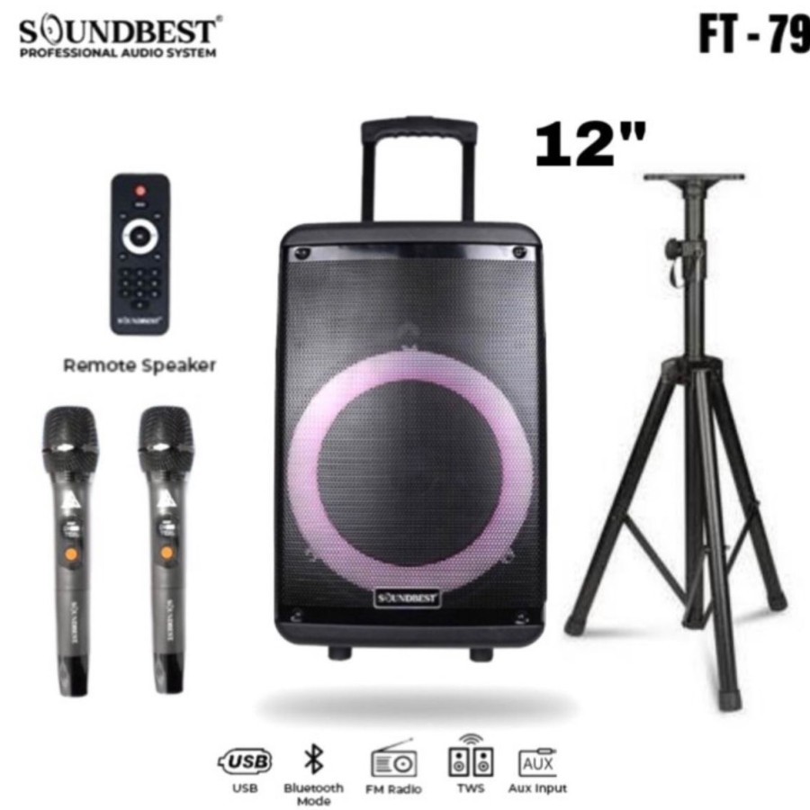 Speaker Portable Soundbest ft79 12 Inch Original FREE STAND Gratis Ongkir