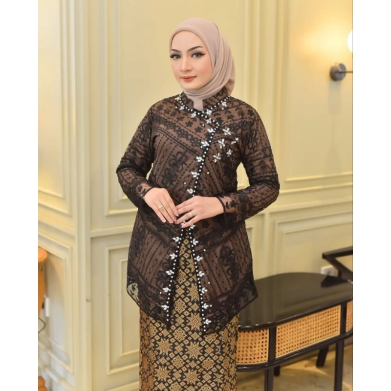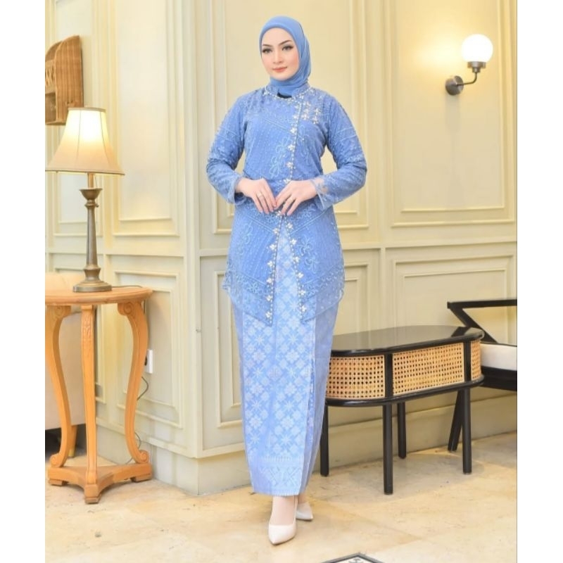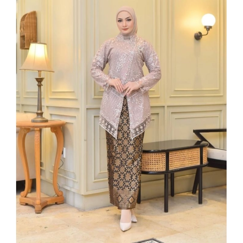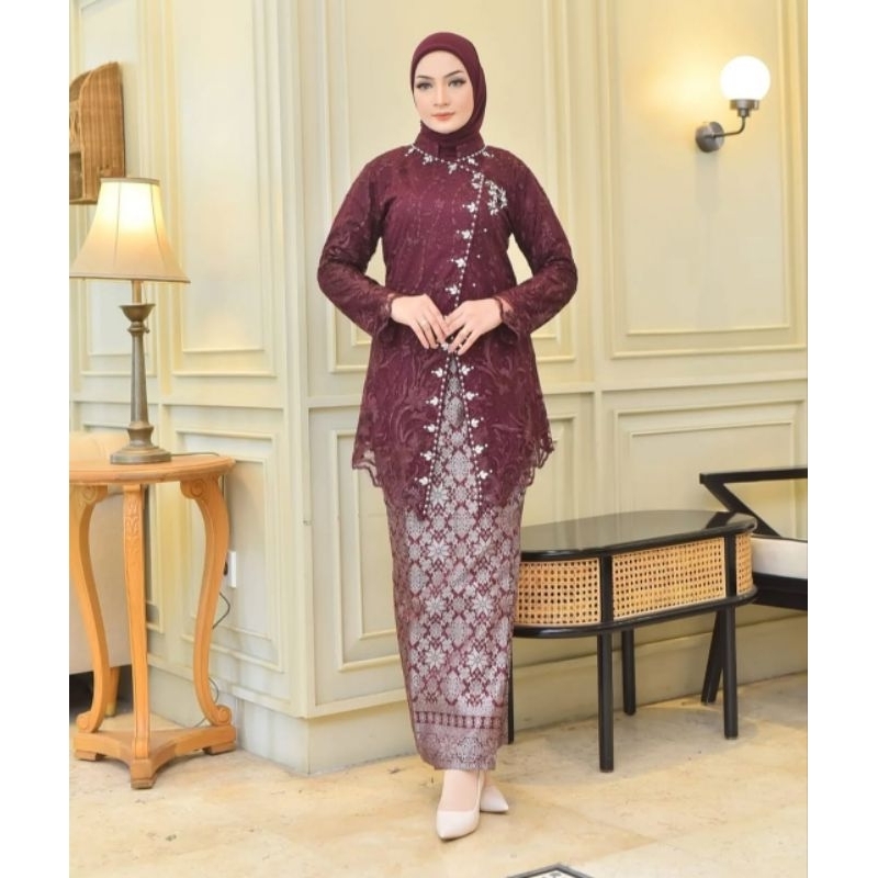 SETELAN KEBAYA KONDANGAN TULLE BELAH PAYET TULLE(+FREE HIJAB)//SET KEBAYA KONDANGAN ROK SONGKET PESTA MEWAH//KEBAYA PEST