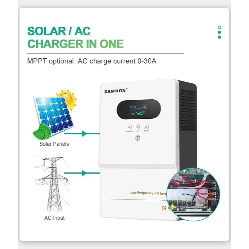 ZAMDON FREKUENSI RENDAH 3,75KVA 3KW 48V INVERTER SURYA HIBRIDA OFF GRID, MPPT 60A BAWAAN LFT30248