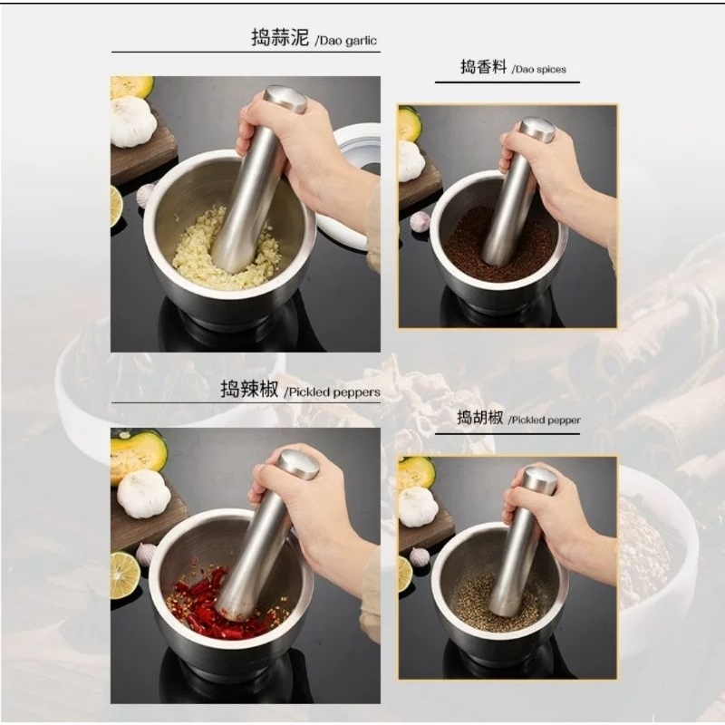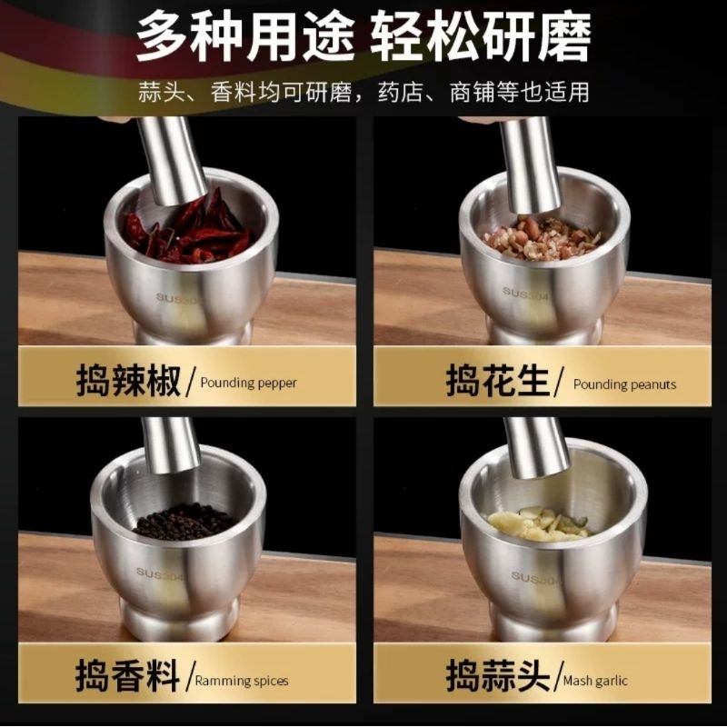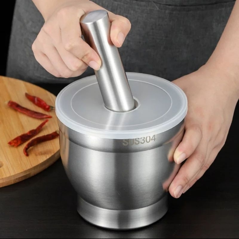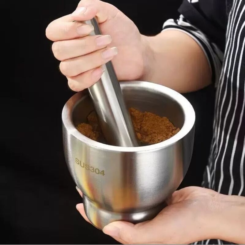 COBEK STAINLESS ULEKAN STAINLES MORTAR PESTLE STAINLESS SET LUMPANG ALU PENUMBUK BUMBU DAN OBAT SUS304 ANTI KARAT