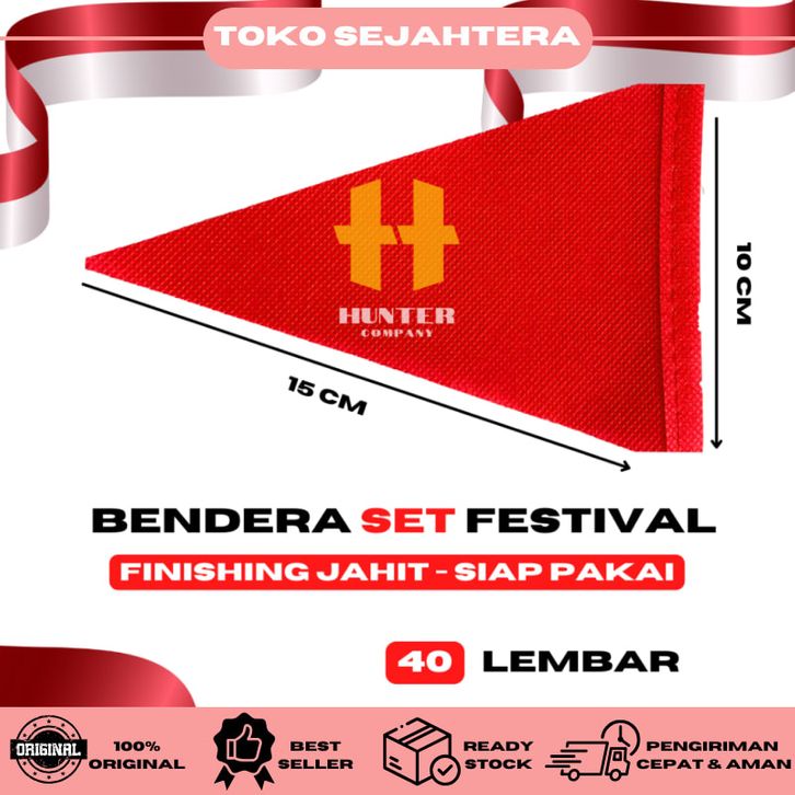 ISI 40 Lembar / Bendera Kain Spunbond SEGITIGA Merah Putih / Bendera Tali Tinggal Pasang/Promo Kemerdekaan Indonesia