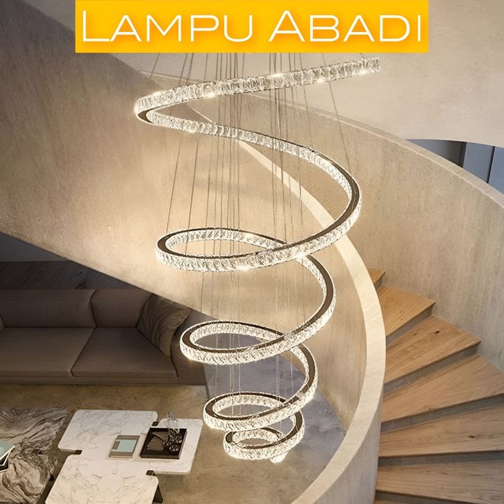 Lampu Gantung Hias Kristal Spiral Mewah Super m0dern Lampu Gantung Tangga LED R- Tamu