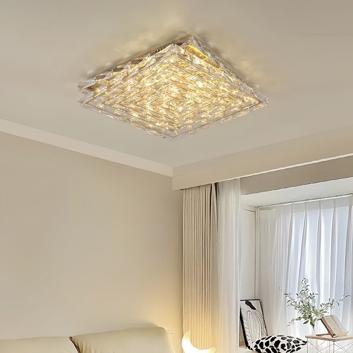 Lampu Plafon R- Tamu Lampu Kristal Mewah Lampu Hias LED 3 Warna Lampu P lafon Kristal