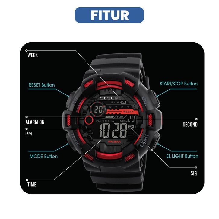 SESCO 1243 Jam Tangan Pria | Cowok Digital Anti Air Original Dengan Tali Karet