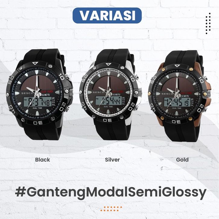 SESCO 1064 Jam Tangan Pria | Cowok Digital Analog Original Dengan Tali Karet